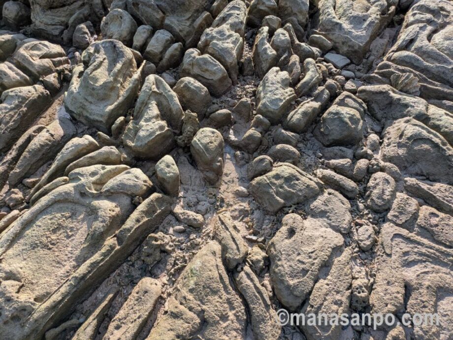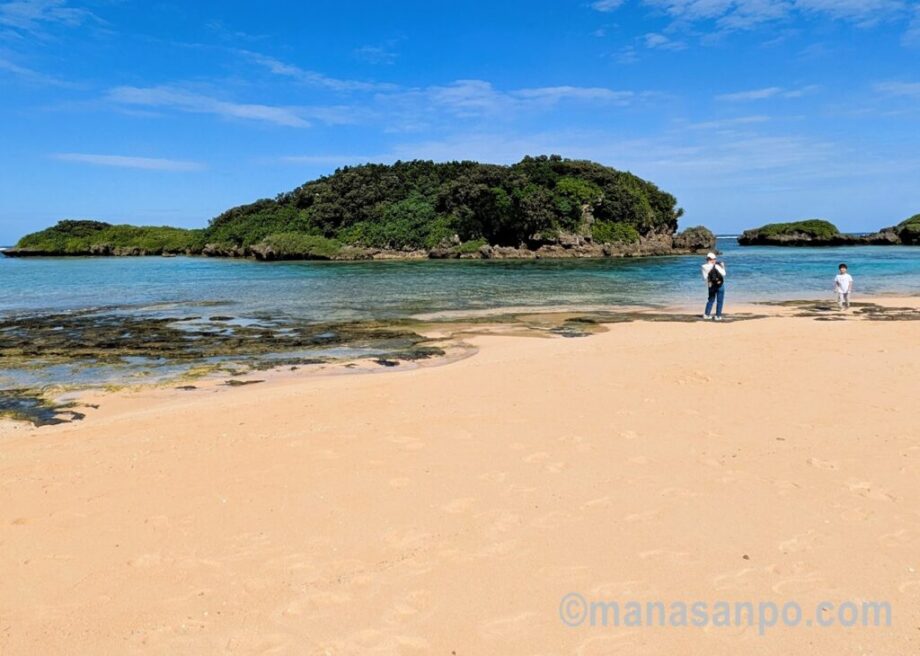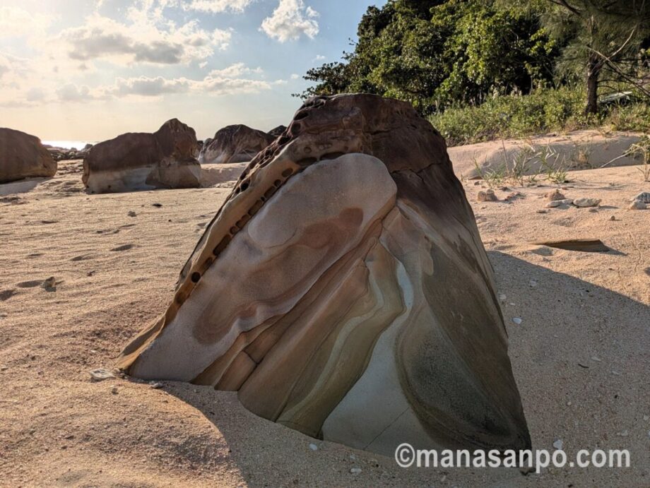 南風見田はどこまでも続く砂浜に、奇岩がごろごろしていました。