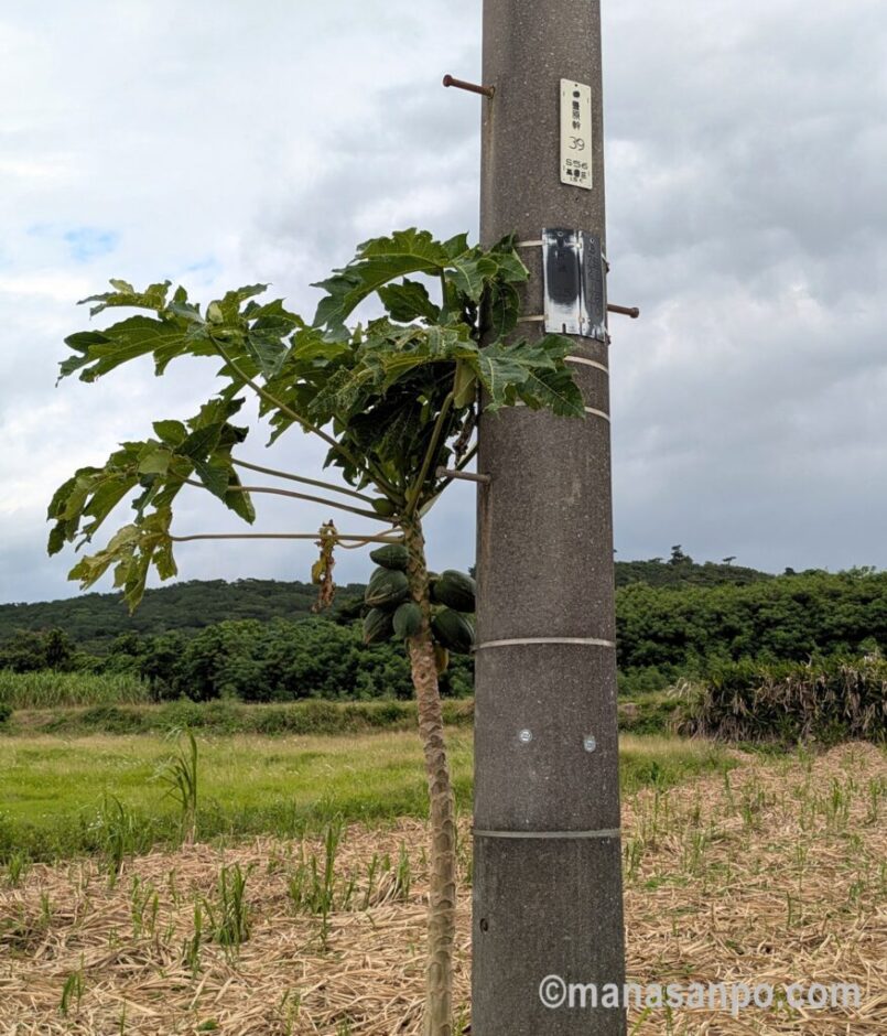 サトウキビ畑が続くなか、パパイヤやバナナの木の横を歩く。歩いている人はおらず誰ともすれ違わない。