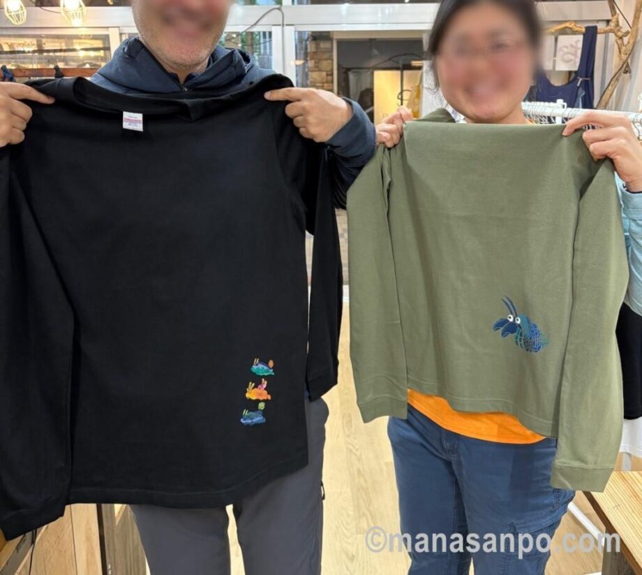 Tシャツ、カバン、ポーチなど好きなものえらびます。次に、入れたい絵柄を決めます。