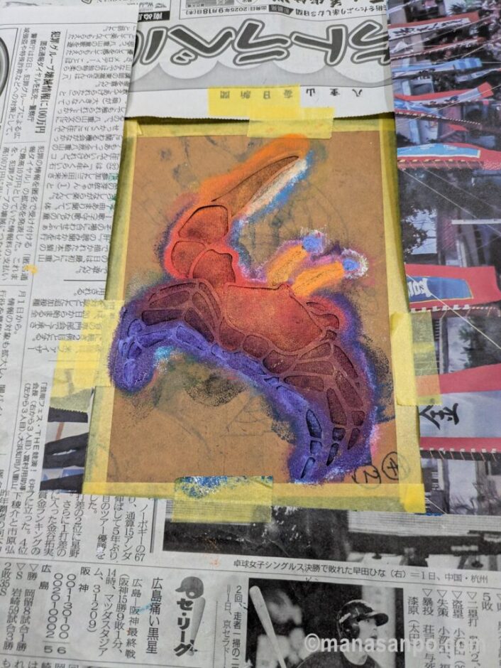 料金は、長袖1枚3800円(型染め1つ込み)。わたしは型をひとつ追加したので+1000円でした。