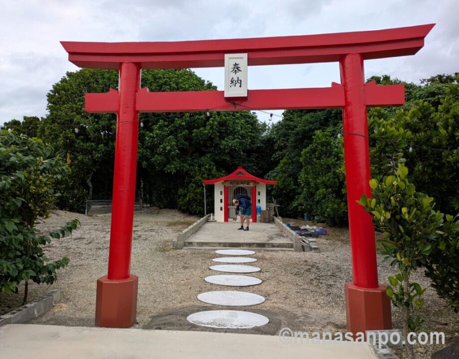 空港から港に行くバスに乗っていたとき、窓からチラッと鳥居がみえました。海沿いにある船着御嶽(うたき)です。